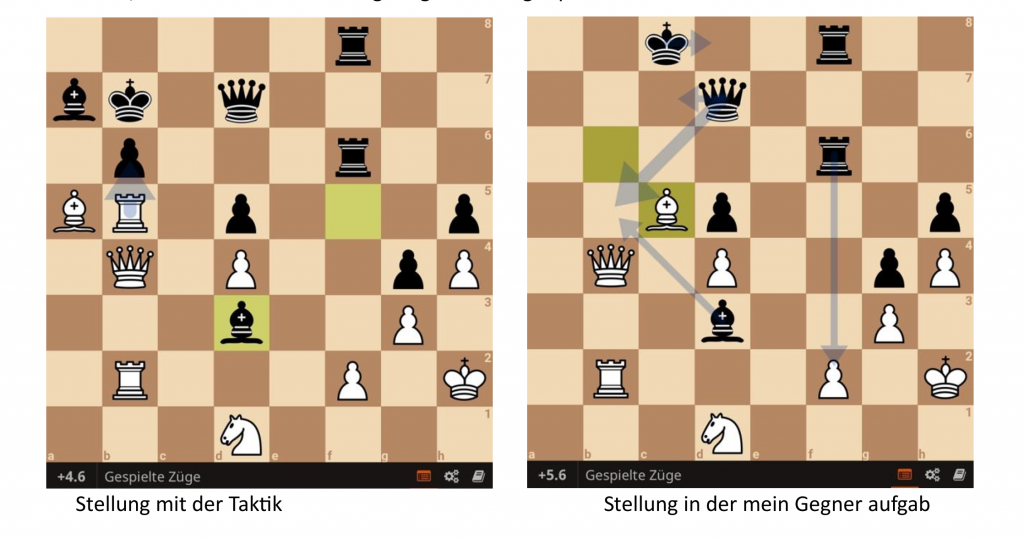 dass ihr Bauer auf g5 hängt. Und plötzlich steht der Gegner viel besser. Aber